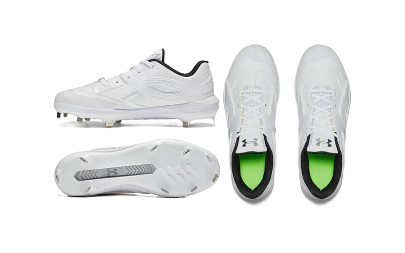 クッション性のあるミッドソールをつま先から踵まで配置し、足裏への突き上げを抑えてストレスを解消させた、アンダーアーマーの金具スパイクです。