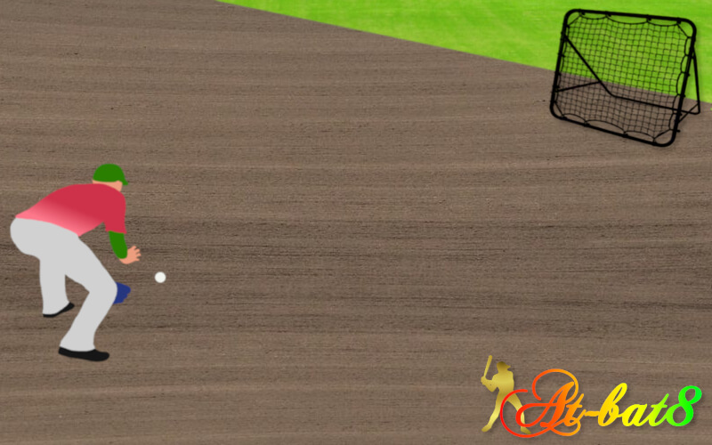 腰を落とし過ぎるとスローイングの動作に移行できなくなるため、腰は肘を少し曲げてグラブが地面に触れる位置になるようにします。
